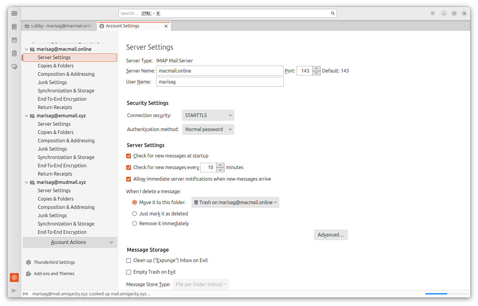 Create your account at https://macmail.online first, then use these steps to set up your mail client of choice. Note that if you sign up as “foo” your email address will be “foo@macmail.online”.